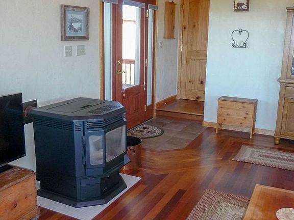 - Vaulted Ceilings, Walk-in Closets, Ceiling Fans, Window Coverings, Central Vacuum, Pellet Stove, Flooring: Carpet, Jetted Tub, Flooring: Wood (Hardwood)