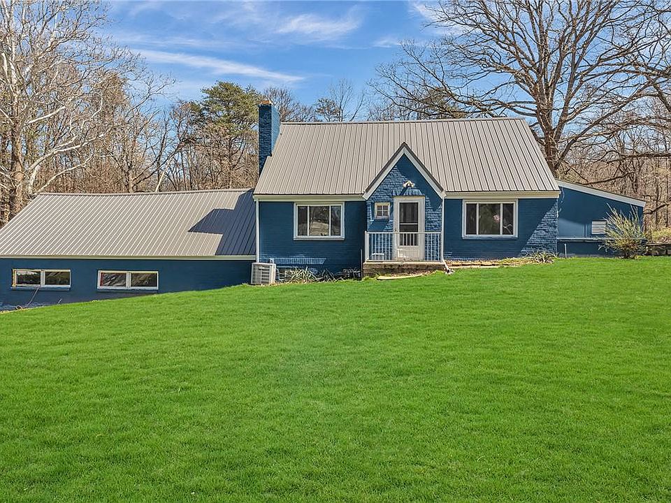 This 3 BR, 2 full bath BRICK home is situated on FOUR acres in the heart of Center Twp!! The property offers plenty of frontage and LOTS of flat backyard space.... then up a small hill into a PRIVACY PARADISE, surrounded by trees! ENDLESS possibilities for this beautiful lot! Current owner painted the brick exterior and just added a brand new metal roof to enhance the curb appeal. Inside you'll find a freshly painted interior, hardwood floors, a beautiful stone fireplace, tons of natural light, a large full basement, and a first floor master BR. The exterior features plenty of parking, two large sheds, a deck off of the dining room, and a small creek. Minimal TLC and own personal touches would make it shine. Very convenient location within the Central Valley School District. As-Is sale.