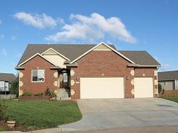 WOW...SOMEONE IS GOING TO GET A SWEET DEAL HERE!!!HUGE PRICE REDUCTION!!Beautiful, one owner, Stovall custom built home. Situated on nearly 1/4 acre cul-de-sac lot in quiet subdivision, just 5 minutes from Wichita. If you want a beautiful and well built home this is it! Home has a full brick front, vaulted ceilings, and great architectural detail throughout. Beautiful millwork in kitchen, stainless appliances, wood floors. Large covered wood deck with access from both dining and master. Lovely master suite with large master bath that includes a whirlpool corner tub, his and hers sinks and walk in closet. The full finished view out basement is complete with surround sound with recessed speakers, large wet bar, 1 bedroom, large bath, plus lots of storage. Home features in home audio in Master bed/bath, living room, kitchen & deck. Cable in all bedrooms, 2 in basement and 1 by fireplace. 13 SEER A/C, humidifier, air filtration, home security system, secondary electric breaker outside. 6 Ft. extension on 3rd garage with loft storage. Garage wired for 220, also plumbed for hot/cold water. Home also has a new whole house water softener. A total quality home and it s move-in ready!