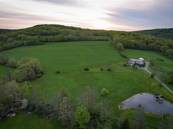 Welcome to Heartwood. A one-of-a-kind estate centered around an ethic of care and conservation. A place of peace, the property is basked in light bringing radiance to the custom-designed multi-story home with over 58 acres. Majestic and versatile the home occupies 3 levels totaling over 7,000 sqft. The unique residence features 2 separate living areas, and finished space below grade, that could be an office or additional living quarters. 5 bedrooms, 5 bathrooms, 2 kitchens, 2 laundry rooms and common areas. The home features include 2 custom Tulikivi soapstone fireplaces on the 1st floor, sun-drenched porch, 3.5-car garage with a 2nd floor finished space and a few outbuildings. Each level has its own climate control for the potential of an Airbnb, B&B, multi-family living situation or other business. A generator, high-speed internet and good cell phone service punctuate the utility of the space. Wildlife is abundant with 30 acres of open fields which are well-suited for various crops. The pond offers fishing, floating and swimming among its clear waters.