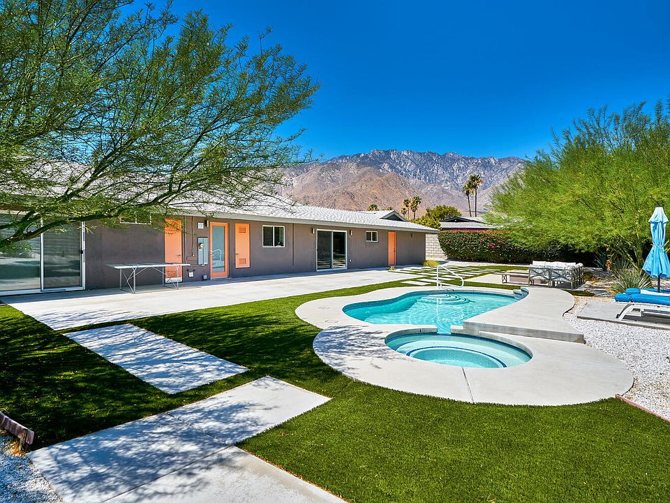 This revived and rare ''All Seasons'' Mid-Century Alexander is one of only few hundred constructed. Renovated and completed for today's modern luxuries and finishes, this home offers open concept living with white porcelain flooring throughout, a sleek kitchen and energy efficient windows that invite an abundance of natural light. Slider doors around create ideal flow to the outdoor living spaces that feel like an extension of the home. The outdoors greet with multiple lounging/entertaining areas, explosive mountain views, privacy, low maintenance turf and a sparkling pool/spa. Many updated systems include plumbing, electrical, landscape, pool, equipment and so much more... Located just a few minutes from all Palm Springs shopping, dining and nightlife, yet removed enough to hear the quiet and feel the desert energy. 492 E Simms Rd is ready for a buyer that seeks architectual integrity, modern amenities, style and convenience. Qualification requestied to view the property.
