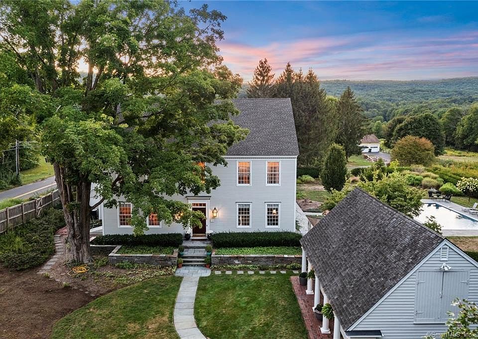 This lovely Mini Estate is truly a country retreat. The stately center hall colonial combines the beauty and charm of yesteryear with updated amenities to attract the most discerning buyer. The main farmhouse built in 1860 seamlessly blends with the 1989 addition and the 2021 upscale updates. Set on two professionally manicured acres surrounded by new fencing, has breathtaking views of the abutting McLean Game Refuge. A gorgeous foyer greets you with its grand mahogany front door and beautiful staircase. Eleven-foot ceilings, CT cherry floors, wainscoting and crown molding throughout with fabulous views of formal gardens and newly refurbished heated gunite pool and spa. A formal dining room with seating for large gatherings leads into new gleaming kitchen with center island, top of the line appliances and new cabinetry. A 2nd island seats 9 leading to a cozy sitting area with fireplace. Newly finished game room and bar will delight your guests. An over-sized living room with fireplace, perfect to host those special parties. The comfortable family room with fireplace is great for movie nights. The second staircase leads to an office/bedroom with fireplace, renovated baths, and three additional bedrooms. The primary bedroom and bath have been renovated, complete with closets galore and fireplace. The lower level has gym, fireplace, 2 additional rooms and full bath. Lush grounds adorned by a sparkling pool and stone patio areas for entertaining, complete the magic of this home.