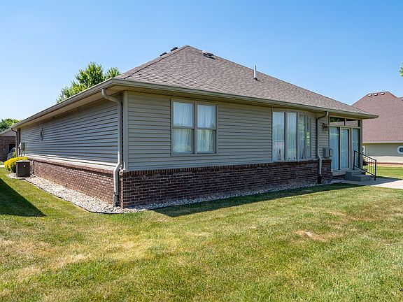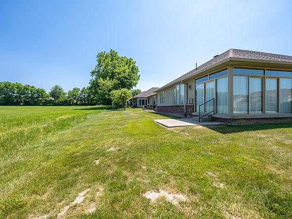 Spacious and bright 2 bedroom, 2 full bath Glenview Village condo in a fantastic location with lots of room on the side and pastoral views behind. There are many wonderful upgrades in this condo, which include the open-concept sunroom/living room with gas double-sided fireplace, crown molding throughout, large storage room, white kitchen cabinets with Corian countertops, hardwood floor entry, extra large guest bedroom & garage storage. The home features a large open living room, dining room, kitchen with lots of cabinet/counter space & breakfast bar, spacious primary suite with walk-in closet, large laundry room with utility sink, & so much more! All appliances included. Snow removal, lawn care, & exterior maintenance included in mo. fees.