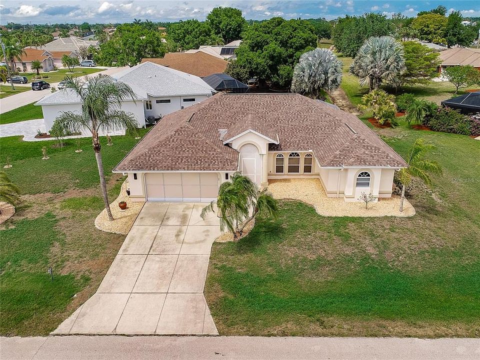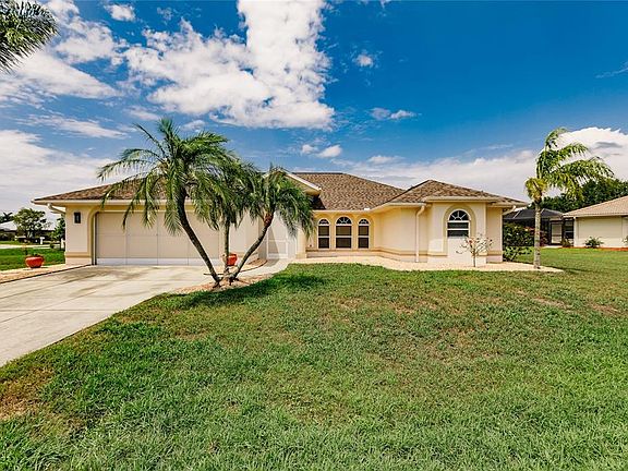 Fabulous location in the deed restricted community of Burnt Store Meadows just a few minutes from historic downtown Punta Gorda and popular Fishermens Village. You can move right into this tastefully appointed 2 bedroom, 2 and half bath pool home on almost a third of an acre corner lot overlooking beautiful greenbelt. This home offers bright and open floor plan with soaring vaulted ceilings in main living areas, and sliders in all main living areas leading to pool and view of greenbelt. Home has plenty of room for family and friends with almost 1900 square feet of living space, living and dining, spacious kitchen, and family room. Features include new wood look laminate flooring, ceramic tile, blinds throughout, plant shelves, new decorator light and fan fixtures, and recessed lighting. Family room has lots of extra storage with built in shelving and wall closet. Fully equipped kitchen boasts built in wall oven and cook top, 3 door fridge, warm wood cabinetry with deep pot drawers, pantry, granite counters, and breakfast bar with pendant lighting that opens to the main living areas for easy entertaining. Master suite has his and hers walk in closets, bump out wall for extra living space, tray ceiling, and private en suite bath with dual sinks, jetted walk in tub, and separate shower. You will enjoy your heated pool year round or relaxing on your lanai overlook the beautiful greenbelt, And no puddles in your home with air conditioned half bath adjacent to pool. Other features include storm shutters and hurricane code garage door, security system, water softener, new pool pump, dedicated laundry room with utility tub and plenty of storage, additional storage area with under-floor safe, and skeeter screen on garage door. Lovely curb appeal with screened front entry, mature trees and shrubs, landscape curbing, and decorative rock. Burnt Store Meadows is a deed restricted community with all homes located on greenbelts with lots of open space. Proximity to waterways, local beaches, dining, shopping, and golf courses makes this property ideal for the Florida lifestyle. Also, easy access to public waterfront parks with bike and walking trails, picnic areas, and boat ramps providing access to many waterways including the Myakka and Peace Rivers, beautiful Charlotte Harbor, and the Gulf of Mexico. And quick access to Interstate 75. Quiet deed restricted community, yet all amenities and conveniences nearby.