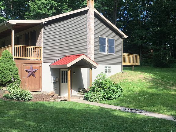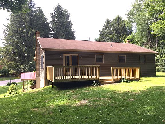 Move in ready! Secluded and private 3 bedroom ranch with open floor plan and 3 full baths nestled on 1.21 acres in South Butler Schools. This home features new appliances, central heating and air, back deck and front porch. The home also has two wood burning stoves; one in the family room downstairs and the other in the great room upstairs. Fully finished walk out basement to include a rustic lodge like family room, laundry room, office space and mud room. Detached two stall car garage on partially wooded lot with a large pole building and a frontier log cabin that would be great for kids playhouse or extra storage.