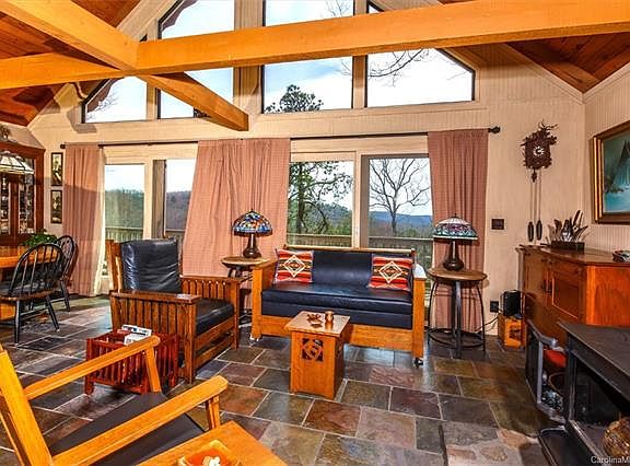 A craftsman-style cabin at Connestee Falls a Premier Western North Carolina Gated Community offering golf, lakes tennis pool hiking trails wellness center private gardens clubhouse. Updates include custom kitchen S/S appliances floor to ceiling pantry stone slate floors new windows, 6 panel pine doors baths window treatments wrap around decks HVAC exterior siding and roof.. Wine cellar with open design and beverage box, wrapped in 1/2" white washed pine siding and ceiling. Enjoy the lower level fire pit on cool spring/autumn nights.Great location near lakes/clubhouse year around mountain views. Come see why we love living where we play.
