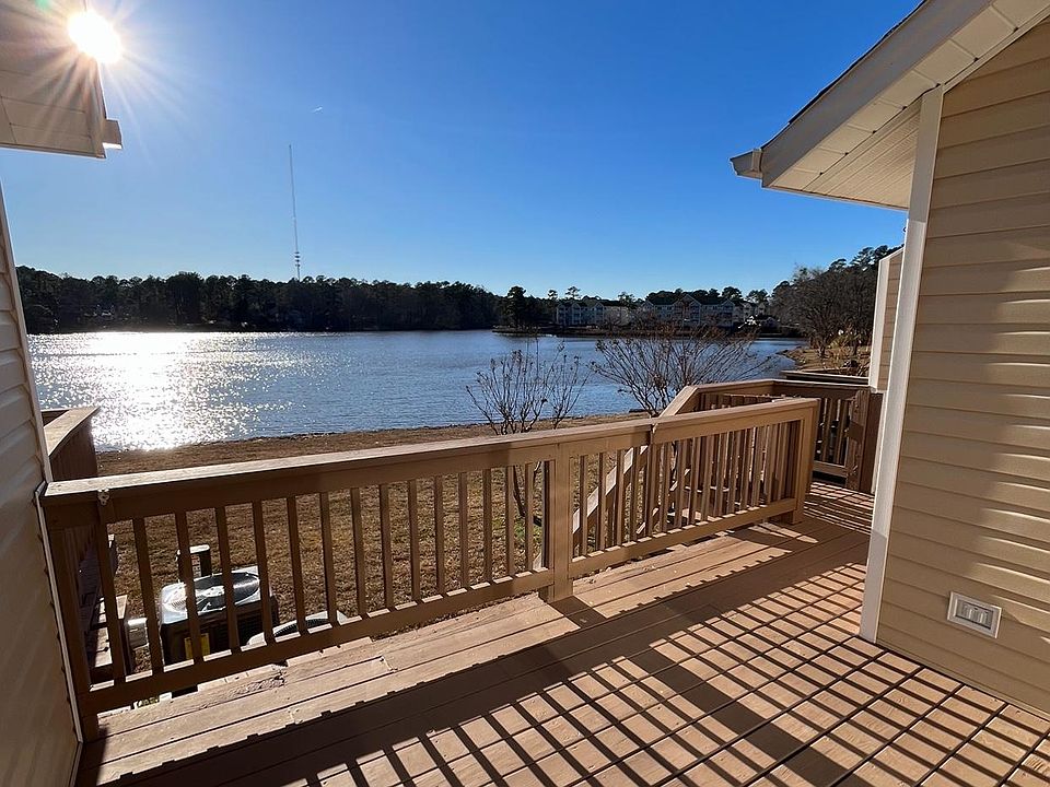 Immaculate Townhouse unit on the lake in quiet secluded area conveniently located minutes from mall area, restaurants and Military base; vaulted ceilings and wood floors downstairs with wood burning fireplace; three bedrooms with three full baths; outside storage on deck overlooking the lake.