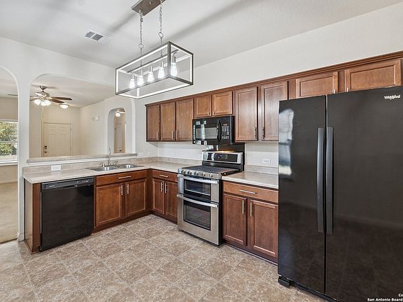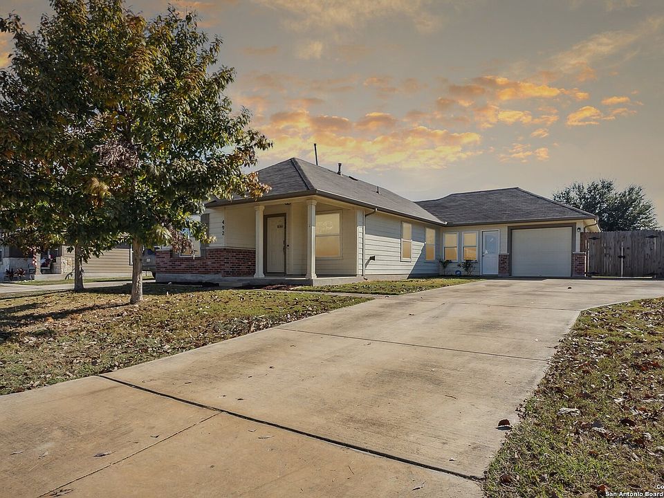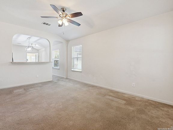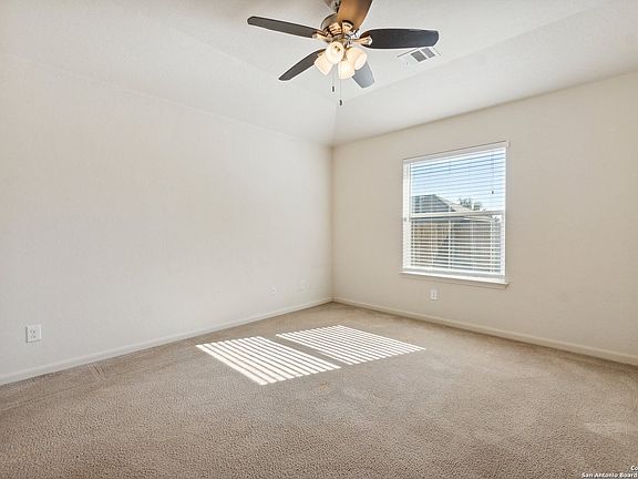 Charming single-story 3 bed, 2 bath home in the desirable Whisperwind subdivision! The front yard welcomes you with attractive landscaping, and a cozy front porch. Step inside to a bright family room filled with natural light, seamlessly flowing into the kitchen. The private master suite offers a spacious walk-in shower with an elevated showerhead and a walk -in closet. Two additional bedrooms provide plenty of space for family, guests, or a home office. Enjoy outdoor living in the backyard with plenty of space and a HUGE breezeway between the garage and home-ideal for year-round use. The property also features a single-car garage with an expansive driveway. Conveniently located with easy access to Hwy 46 & I-35, plus tons of nearby shopping and dining.