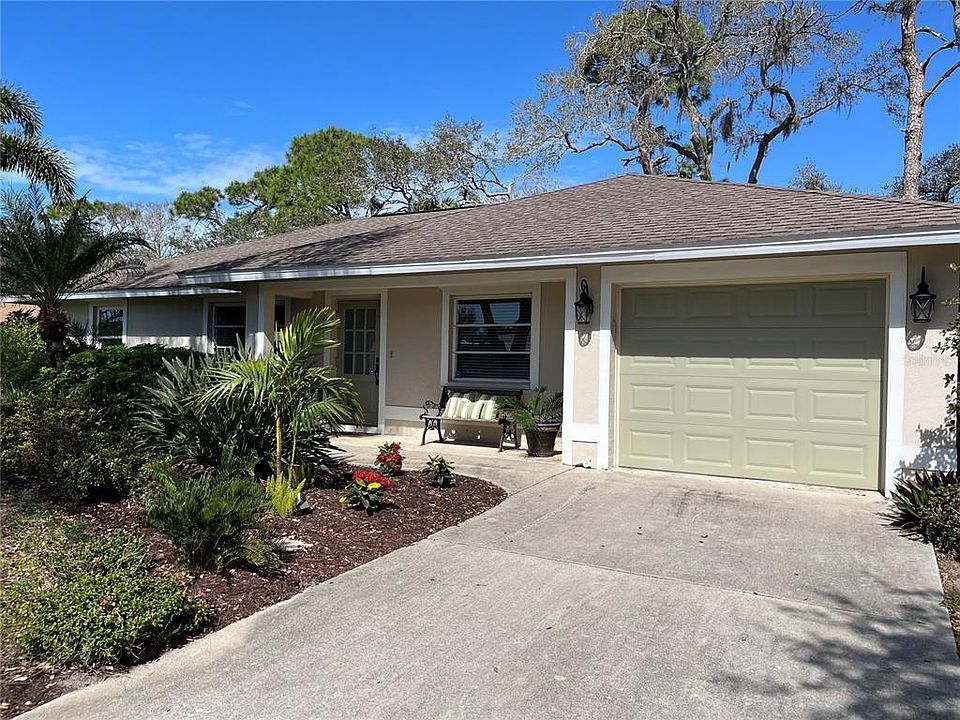 Want Peace of Mind in your new HOME? This MOVE-IN Ready, TURN KEY property sustained zero damages during the recent storms! If you are looking for character, charm and privacy, this home checks all the boxes. It is tucked away on a very private, oversized lot with stunning professional landscape and easy-care gardens. Spacious one level living features 1,510 sq ft, 3 bed, 2 bath and exudes casual elegance designed for easy living. Step into a tasteful open concept living/kitchen area featuring crown moldings, trim, porcelain floors, wood shaker cabinetry, stainless steel appliances, granite countertops, travertine backsplash, RO water, walk-in pantry. Enjoy magical moonlit dinners in the lovely window-lined dining room and covered lanai overlooking your personal secluded tropical oasis. The large 24’ x 14’ covered travertine lanai opens to 40’ paver patio offering shade and gentle breezes. An airy/bright house with 4 solar tube skylights designed by NASA for space shuttles – bringing in light but keeping out heat. Ideal split floor plan with TWO generous primary king bedrooms, updated ensuite bathrooms, walk in closet and stylish ceiling feature. A THIRD bedroom accommodates a king bed as well. Double French doors lead to the laundry room and large garage. Just 7 mins to beautiful Manasota Beach, Lemon Bay Preserve, Legacy Bike Trail, Shamrock Park Tennis. Mins to Historic Downtown Venice with an eclectic array of premiere dining, shopping and entertainment or head to Wellen Park for their amazing Farmer's Market and Open Lawn Concerts! This property is truly a hidden gem with NO HOA, NO CDD, low taxes and convenient centralized location. Whether you are looking for full time, part-time or even investment property with rental estimates at $6,000/month in season, this home has it all.