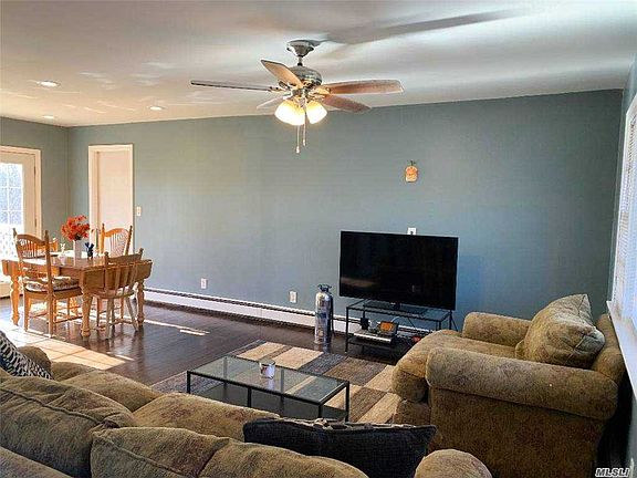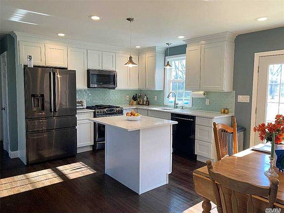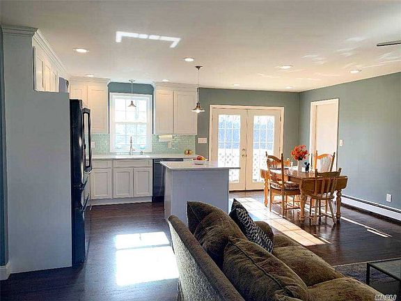 Looking for a quaint updated ranch with an open view backyard? Look no further! This 2 bed,1 bath, with basement and garage is move in ready and in the ESM SD! The home offers wood flooring throughout. A new and reconfigured white kitchen with shaker cabinets, new quartz countertops, new backsplash, new black stainless steel appliances, led hi hats, fixtures and french doors. The open living and dining room are welcoming and cozy. Additional 2 bedrooms with wood floors and full bath with tile complete the footprint. Step from the kitchen, separate entrance, or the garage, down to a basement with unlimited potential. New , high efficiency, tankless system for hot water and heat. All new water supply pipes with multiple shut offs, 100 amp service with a new box and breakers. New cesspool installed 2020. The roof is 9 years young. Come enjoy your new home on your deck with new rails overlooking the expansive private backyard. All of this, LOW TAXES and in the ESM SD! Call today!