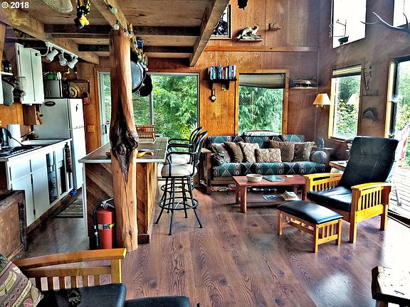 Road access lake front chalet style cabin with nice spot to park an RV. Located in wind protected, super sunny "Otter Cove" on N Ten Mile lake. Large living room with newer wood stove and lots of windows. Loft bedroom. sold furnished. Rain collection/gray water storage in place, will need incinerator toilet. Park at the top and walk down 200ft on steep stairs/trail to cabin, be careful. Owner willing to carry.