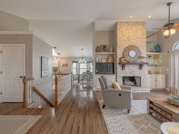 Indulge in lakeside luxury with this exceptional 4-bedroom, 3.5-bathroom waterfront home in the heart of Innsbrook Resort. Just steps from Lake Whippoorwill serene shoreline and resort amenities, this property offers premier resort-style living. The main floor features two primary suites, an airy living room with oversized windows and a striking stone fireplace, a dining area featuring a charming farmhouse-style table, and a chef’s kitchen with granite countertops, breakfast bar, and skylights for natural light. Main floor laundry added for convenience. Relax in the all-seasons room or the fully finished lower level with a rec room, wet bar, game area, and two additional bedrooms. Outdoor highlights include a two-story deck, gas grill, hot tub, and a path to a fire pit and private dock—perfect for fishing, swimming, or peaceful views. Currently, a managed vacation rental, this property offers immediate income potential for the buyer. Don’t miss this exceptional lakeside retreat! Additional Rooms: Sun Room
