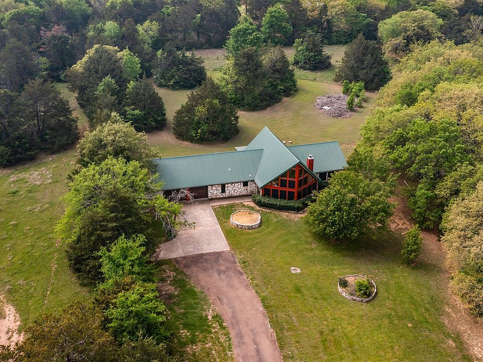 HUGE PRICE REDUCTION OF $100,000 to accommodate buyer's updates. With 4 ACRES and a wet weather pond, you need to take a look and see how you can make it your dream home. This home was built to make you feel like you are in your own Colorado Ski Chalet. A wall of windows from floor to ceiling opens to the vast treed front yard with a wet water pond. This is a rural retreat like no other, with a large loft area perching above the living area that can be a bedroom, add an armoire, a cool office retreat or put a pool table in for a rec room, OR make it your Exercise room. Home offers gorgeous views of the vast back and front acreage. Beautiful covered back deck is perfect for early morning bird watching and catching the sunsets.