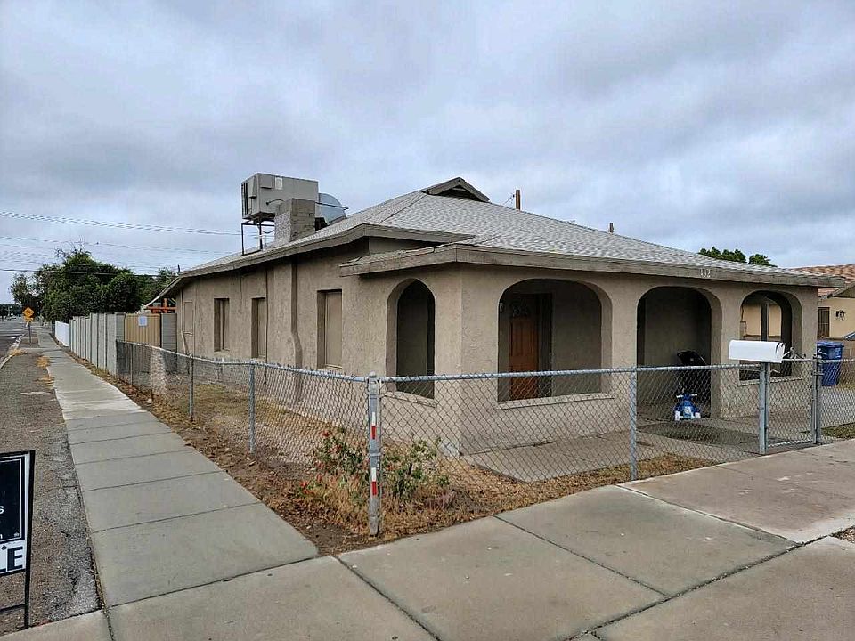 Cute house on corner lot. some remodeling done. There is a beautiful fire place and new wood flooring in the main areas like living room and dining area and kitchen, storage room can be converted in to a studio rental or mother in law. Toilet, shower, sewer, Gas line for stove. No electricity but lines can be connected needs complete refurbishing's to make it perfect. call Ceci for questions
