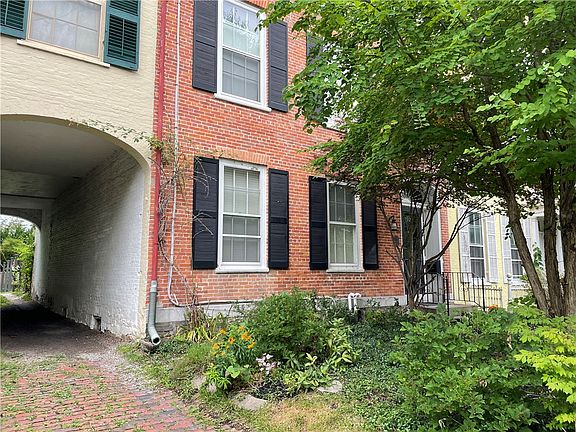 Discover Timeless Elegance & Modern updates in this stunning 3-story brick row house located on Geneva's renowned South Main Street. This historic gem boasts architectural character, offering a perfect blend of classic charm & contemporary amenities. High ceilings & large windows flood living areas with natural light. Welcoming foyer, highlighting the home's beautiful hardwoods & banister. Enjoy peace of mind with new mechanical systems. The kitchen is a chef's dream, featuring granite countertops, cork floor, storage, & full suite of appliances. Formal dining opens to a deep backyard through glass doors. The patio is perfect for relaxing with plenty of space for a parking area. A stylish half bath & tidy mudroom add convenience to your day. 2nd floor offers a luxurious Owner's Suite with built-ins & beautiful custom bath, w/a walk-in tiled shower, bidet, & storage. 4 additional BR's complete the 2nd & 3rd floors, along with a lg. room that can be used as a studio/bonus room. Attic room leads to roof access with a charming cupola. This exceptional property offers the historic appeal of Geneva's South Main St & the modern comforts of a fully updated home.