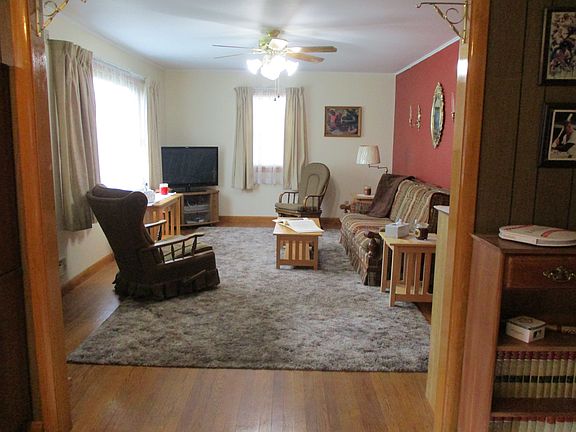 This one story ranch is located on a secondary road in a desirable neighborhood within the Little Falls school district. Situated on 1.8 acres, with 380' of road frontage, it overlooks a small creek with waterfalls that runs along the back of the property creating a park-like setting. Updated in 2010 with new roof, vinyl windows and siding it is easy to maintain and accessible with only one step into the home. Exceptionally built, this framed home has a partially finished basement under the main house as well as a workshop/basement under the attached former garage area. It also has a small storage shed on the property and a detached 18' X 40' storage garage with electrical service. The former garage was converted into a rec room that accesses the covered patio (which could be used as a carport) overlooking the creek's waterfall and bridge. Adjoining the rec room is a den with a working fireplace that provides supplemental heat to that room and the rec room. The main living space has a kitchen and dining room open to the living room. Oak hardwood flooring is in the bedrooms and living room and oak woodwork runs throughout the home. The kitchen has cherry cabinets and 2 year old appliances. The partially finished walk out basement has bar area, laundry and shop section. The oil forced hot air furnace is approximately 5 years old. Some worn linoleum in the kitchen/dining room and a little updating is all that is needed to make this home outstanding.