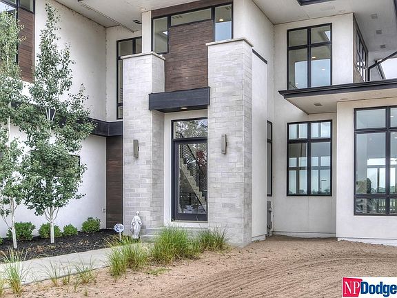 Contract pending. On market for back-up offers only. This modern two-story home is designed for lake life & priced way below replacement cost (just $262/SF! not including lot). It is located on the southern end of popular Sandy Pointe Lake in the middle of the action with water sports allowed right off the 300 feet of prime shoreline! It is among the largest lots with uninterrupted views of the Platte River Valley. The house features a huge open main floor with 6 beds & 6 baths with a massive primary suite that overlooks the lake through wall of windows. A home theater and second kitchen in the lower level to ensure the fun never has to stop. No detail was missed in this custom build. Highlights include 24-ft ceilings in main floor great room, plus 10-foot ceilings upstairs and in the lower level. Huge heated five car garage with extra tall garage doors and electric vehicle charger. Climate-controlled beach room to store all the water toys & beach necessities. Option to sell furnished.