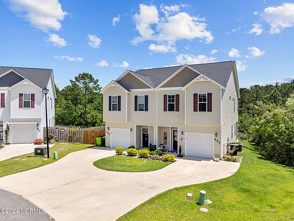 A must see! Conveniently located close to hwy 17, military bases, beaches and more, this delightful townhome has an open floor plan on the first floor and spacious bedrooms on the second floor. The primary suite boasts a walk-in closet and a large bathroom with dual vanity sinks and a walk-in shower. Relax on the covered back patio over looking the backyard and wooded area.