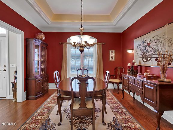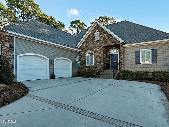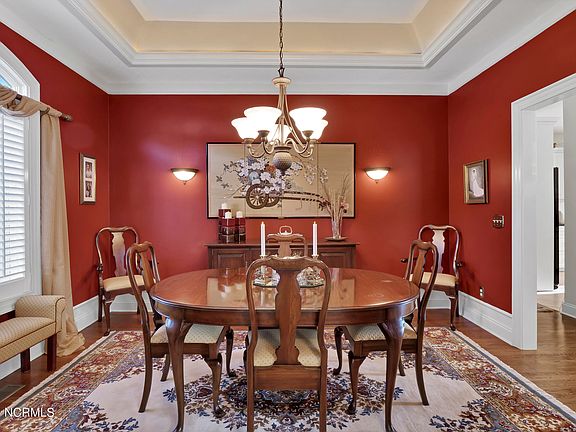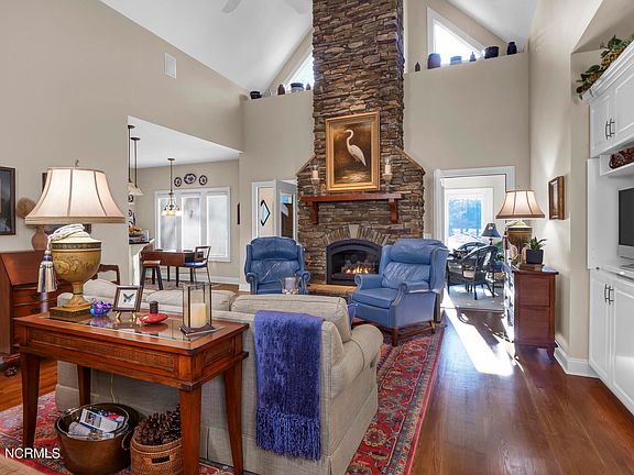 Exquisite custom home on a pond with golf course views beyond. Enjoy the views from the large custom deck of the extensive landscaped gardens. New roof in 2024 and crawl space renovated in 2023. House has hardwood floors, granite counter tops, custom stone fireplace with antique heart pine mantel, vaulted ceilings, central vacuum, climate controlled storage area, and fresh paint in garage.
