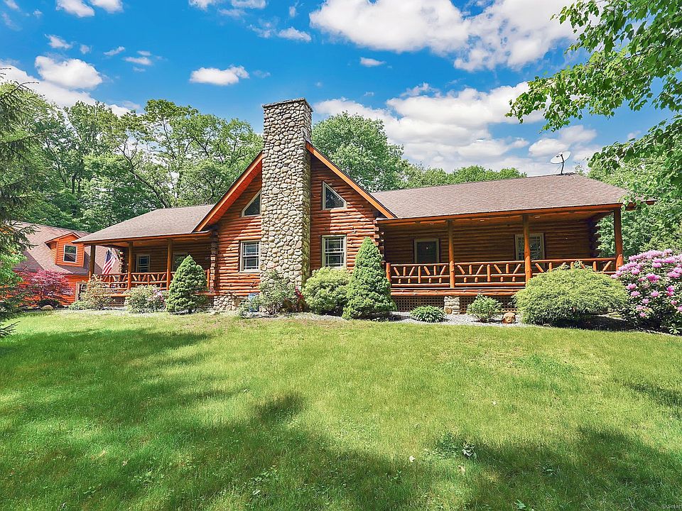 This Open Concept Custom Built Log Cabin Home features hand peeled logs and Cathedral Ceilings and has everything to offer to it's new home owners. This Home made the Front Page of the 2005 "Country Best Log Homes" and With it's unique style this home was personally designed by the owners in 2002 and sits on 5.65 acres of land. This home has a total of Three garages however the detached garage has a double bay as well as a heated work room with a large attic perfect for someone who has multiple cars and wants a small work shop. This beautiful home has an extraordinary Stone Fireplace and a total of 5 Bedrooms, 3 Full Baths, a Loft that opens up to it's own deck on the back, it also features a Private Office that can be entered from the interior of the home or private access through the garage. Kitchen features Granite Counter tops. Home has Hardwood & Ceramic Floors throughout. The Main Bedroom features three Closets, one which is a walk-in closet & the Bathroom in the main bedroom has Lime Stone Flooring with a Whirl Pool. Basement is finsihed with 10 ft foundation walls. Let's not forget the huge fenced in backyard that has a New above ground pool and extra shed. You won't find another home with these features and level of privacy like this yet close to all area amenities. Book your appointment today. Some of the additional bedrooms are located in the basement