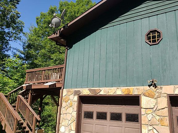 Very nice contemporary home with additional outbuilding providing additional garage and storage. Superb property in a quiet neighborhood. Spacious garage/basement with great room, fireplace with gas logs and full bath. Upstairs on main level, 3 bedrooms and 2 more full baths. Also on main level, kitchen, breakfast counter, dining area and living room with access to front deck and back screened-in deck with direct entrance into the kitchen. The additional outbuilding is similar in appearance to the main house with a one car garage and upper room for storage with separate walk-in entry from behind the building. Terrific property very close to town.