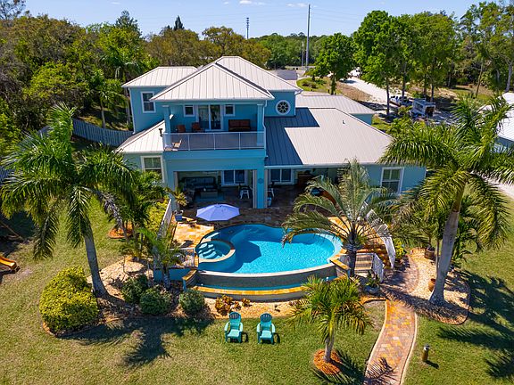Welcome to Island Life at 4920 & 4930 Highway 1 on the deep waters of the Indian River! Luxury Home on Private 1.65 acres with commercial &/or storage building. Mixed-use property features 2013 Home built to Miami-Dade hurricane codes, 3,500 SF under air, 5 Beds, 3 Baths, 3+ car Garage, covered Lanai with Entertainment Bar & Grill area, Pool/Spa, Firepit sitting area by the water, & covered Boat Dock. The high elevation of the property along with Impact Glass & Shutters give storm safety peace of mind. Relaxed elegance choices of Pecky Cypress ceilings, engineered Hardwood & Tile, handcrafted kitchen backsplash tiles by local artisan, & more! Enjoy the deep waters of the Intracoastal with access to the Atlantic Ocean plus a 3,700 SF detached commercial metal building with 3 offices & 1 bathroom along US1. Use this building with high ceilings for your RV storage, antique cars, &/or business; OR lease for additional income & future use. Endless options for an ideal coastal lifestyle!