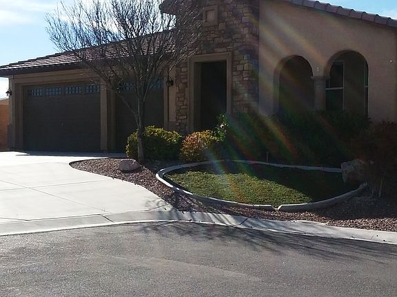 Mountain Falls gem on end of cul de sac with extra parking for your vehicles plus a three car garage. This home has an extra large back yard with a beautiful mountain view,an apple, pomagrante, and peach tree and a separate garden for vegetables or flowers! The patio has added concrete space which wraps around one side of exterior. There are 3 bedrooms, a family room and a huge game or play room. There is a formal living room, den or a possible 4th bedroom. The open dining room enters from the completely tiled hall, kitchen and family area. Seller is offering a $2,000 flooring/carpet allowance so you can select your own choices upon close of escrow. Also included is a one year home warranty plan. Seller will cooperate with brokers so bring all offers. Shown by appt. only. Freshly painted too.