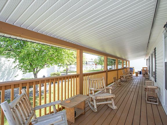 The original owner of this pristine modular home is ready to move on, and the door is open for a new owner seeking maintenance free living in a quiet and safe adult gated community. This home sits well back from the street, and faces an open landscaped yard which can be best enjoyed from the massive covered deck. Inside, the main living space is bright, clean and welcoming. The large kitchen with corner pantry offers ample wood cabinetry and countertop space, and is open to the dining area and a big bright living room. The primary bedroom at the back of the home features a walk-in closet and 4 piece ensuite with jetted tub, and two more large bedrooms and a main bath and are located at the other end of the home. The attached heated garage measures 17x23 feet and offers parking and workspace, but it is currently set up as a dedicated recreational space perfect for entertaining, TV watching, or hosting dart tournaments. This home is in excellent condition, well maintained since new, and features central A/C! The park offers well manicured lawns and landscaping, a clubhouse, playground, tennis court, RV storage and excellent neighbors. Welcome Home!