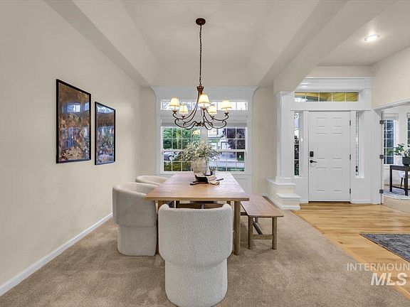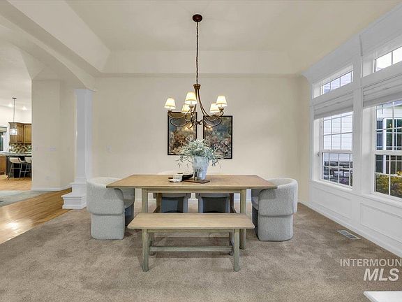 Nestled in the highly sought-after Spring Creek at Harris Ranch community in NE Boise, this stunning custom home is designed for energy efficiency & sustainability. Equipped with solar panels that qualify for Idaho’s PUC 1:1 kWh rate, high-efficiency cold-climate heat pump, Energy Star electric water heater, & EV charger, it’s perfect for eco-conscious buyers. The heart of the home is its gourmet kitchen, featuring a large island, 2 pantries, SS appliances, opening up to a bright & airy great room with a gas tile fireplace. The primary suite offers a tranquil retreat with private patio access & a spa-like bathroom, complete with a soaker tub, dual vanities, a large walk-in shower, & spacious closet. Serene & lush backyard. Split-bedroom floor plan includes 3 bedrooms & an office on the main level, plus a 4th bedroom/bonus room with a full bath upstairs. Enjoy nearby outdoor recreation with easy access to foothill trails, Boise River Greenbelt, Idaho Shakespeare Festival, shopping, dining & more. No CID Fee.