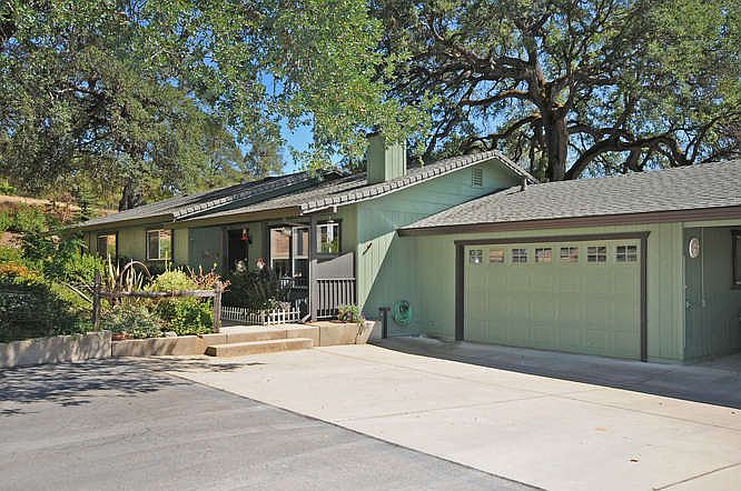 Upon entering the gates to this private estate, you will be surrounded by majestic oaks and a variety of trees. Nearly 10 manicured acres with endless options – Featuring a ranch style 4bd/2ba home with a newer roof, newer vinyl windows, newer tile & carpet flooring. Detached garage w/workshop, added covered parking and guest quarters above. Over 4000sf underground watering system, 5 acres fenced for horses w/riding trails nearby. Lovely local views and a serene setting make this home an outstanding secluded oasis!
