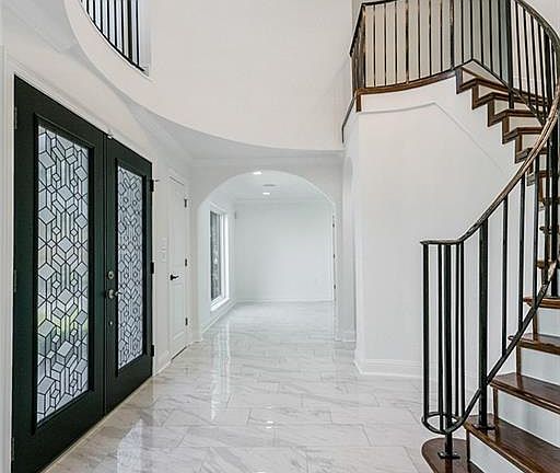 Welcome to this exquisite 5-bedroom, 3.5-bathroom home, completely renovated with a contemporary design that exudes elegance and sophistication. Imagine yourself walking through the grand double leaded glass doors into the lavish entryway. Be captivated by the gleaming wood staircase and the abundance of natural light streaming through the large windows, creating a warm and inviting atmosphere throughout the home. The open concept living area seamlessly connects the spacious living room, dining area, and gourmet kitchen, great for entertaining and modern living. The kitchen is a chef's dream, offering an abundance of cabinets, a dedicated area for a cozy coffee nook, and a massive kitchen island that serves as the heart of the home for gatherings and meal preparations. A sleek wet bar featuring a wine cooler, ice machine, and additional cabinets ensures you are always ready for extra serving during entertaining.