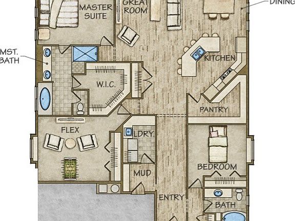 Under construction "The Laughton 2.5 car" by Todd Campbell Custom Homes in the final phase of Paramount. For those seeking a dramatic open concept design. Great room offers entertaining space with an open kitchen, dining room & family room that will allow guests to mingle. Besides the Master Suite there are 2 add'l rooms plus a 4th room that could be used as a bonus room/media area or guest room. Large windows for natural light, custom cabinetry, stainless steel appliances, custom moldings & hardwood flrs.