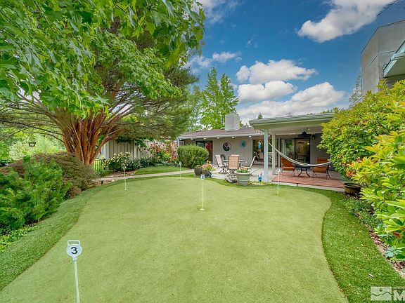 One of a kind, unique to the Reno market and the former home of renowned Reno artist Roy Powers! This is the only townhome in Southwest Reno with a backyard, putting green, and an adjacent golf course view! Must walk through to truly experience the creative, relaxing space being offered., This beautiful townhome is on the 3rd fairway of the prestigious Lakeridge Golf Course. This stunning residence offers an exceptional living experience in the desirable 89509 zip code. With its central location, new LVP flooring in the living and dining space, private putting green, and golf course view, this home is bound to impress. Step inside and be greeted by the inviting interior. The wall of sliding glass doors seamlessly connects the living and dining space with the outdoors creating an ideal space for entertaining family and friends. The large kitchen boasts a new stainless steel stove, ample cabinetry, and tons of counter space, making meal preparation a breeze. The primary suite is on the main floor with its own private access to the stunning backyard. It features 4 closets and an ensuite bathroom complete with dual sinks, a soaking tub, and a separate shower. Guests will enjoy the oversized guest bedroom with a large glass slider that provides access to the gated front courtyard. The finished basement was the former painting studio of renowned Reno artist Roy Powers. The 560 SQFT space has a full bathroom, an office with 2 closets (staged as a third bedroom), and a theater room/game room/painting studio. Outside, the meticulously landscaped backyard offers a peaceful retreat with its very own putting green adjacent to Lakeridge golf course. Additionally, the backyard is low maintenance with artificial turf. Whether you're hosting a barbecue on the expansive patio, challenging friends and family to a putting contest, or simply enjoying the serene atmosphere, this outdoor space is perfect for relaxation. Located in a sought-after neighborhood, this one of a kind townhome offers convenient access to premier dining, biking/hiking/walking trails, entertainment options, golf, and shopping. Don't miss your opportunity to make 4920 Plumas your dream home. 3.5% OWNER FINANCING AVAILABLE FOR A FULL-PRICE OFFER WITH 10% DOWN AND A BALLOON PAYMENT DUE IN 2 YRS. Schedule a showing today and experience the best of Reno living!