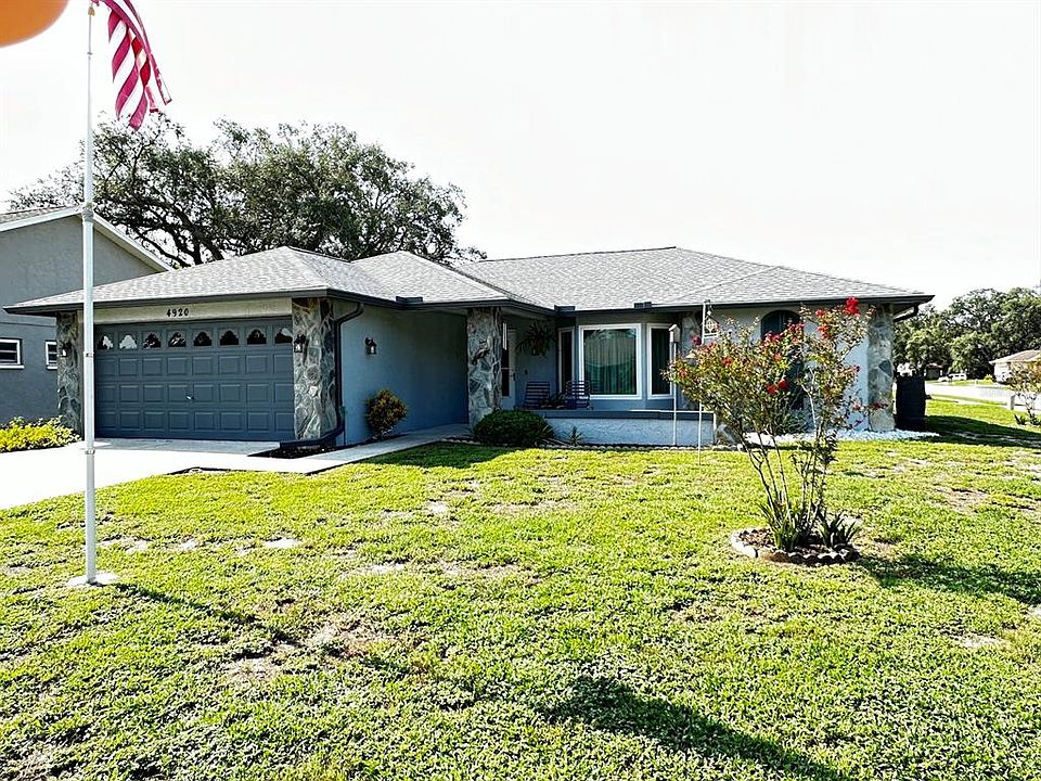 This welcoming and impeccably maintained home is located within the sought-after 55+ community of Heritage Lakes in the trendy Trinity area. Home has two bedrooms, two bathrooms, and a two-car garage, this residence offers an excellent floor plan that features a spacious living room and dining room combination. The interior showcases newer laminate flooring, creating a fresh and contemporary atmosphere. The kitchen has been beautifully updated with quartz countertops and modern cabinets, accompanied by new appliances including a stove, microwave, and dishwasher. The master bedroom is designed with dual closets, providing ample storage space for your belongings. The master bathroom has also been renovated with new cabinetry, and the second bathroom features a new vanity. The inclusion of a heat pump water heater enhances energy efficiency. One of the standout features of this home is the expansive Florida room that spans 22 feet across the rear of the property. The year 2020 saw the installation of a new roof, and the exterior received a fresh coat of paint. Some windows have new triple pane windows and som double pane windows. A water conditioner has also been installed. The residence truly embraces the quintessential Florida lifestyle, offering access to a community heated pool, tennis courts, pickle ball, bocce, and shuffleboard courts. All of these amenities are included in the low homeowner's association fee of just $61 per month. This home enables you to fully enjoy the relaxed Florida way of life, allowing you to unwind while being conveniently located near shopping centers, beaches, restaurants, and hospitals. Moreover, the property is a mere 45-minute drive from both Tampa and St. Pete airports. With its move-in ready condition, this home presents a must-see opportunity for those seeking a comfortable and vibrant Florida living experience.