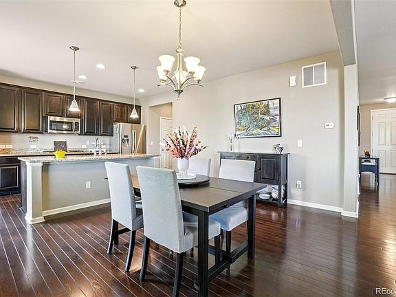 This move in ready home checks so many boxes: 5 bedrooms plus a loft, finished basement, outdoor living spaces, 3 car garage! The welcoming front porch draws you in to the entry with hardwood floors that extend through the main level. Inviting library is the ideal space for meditation or cozying up with a good book. Flex your culinary skills in the well designed kitchen with stainless steel appliances including double ovens and a gas cooktop. Spacious island with bar seating and a walk in pantry provides additional storage. The dining room flows nicely into the family room with cozy corner fireplace. Step out to the covered deck and decide which outdoor space is your favorite! Elevated deck offers a beautiful view of the meticulously maintained lush backyard with plenty of room for activities. Thoughtfully placed patio is perfect for dining al fresco or enjoying beverages under the stars. Back inside, ascend the stairs to find four bedrooms and a generous loft that can be purposed for your exact needs. The primary suite hosts a five piece bath with granite countertops and a walk-in closet. Secondary bedrooms utilize a full hall bath and laundry is conveniently upstairs. The finished garden level basement adds even more living space, including a versatile rec room with abundant natural light. The fifth bedroom and 3/4 bathroom are perfect for guests or as a private retreat. Concrete tile roof adds to the curb appeal and helps lower the cost of homeowner’s insurance. Nestled in the desirable Copperleaf community within the Cherry Creek School District, residents enjoy access to a clubhouse, community pool, and parks.