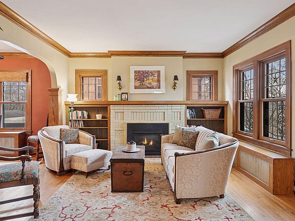 This charming two-story home in Tangletown seamlessly blends classic character with modern updates; all just steps from the scenic Minnehaha Creek. The inviting foyer sets the stage for the open main level, which features an updated kitchen, a cozy living room with a gas fireplace, and a formal dining room, perfect for entertaining. Adjacent to the living room, a versatile office/TV/family room provides additional space for relaxation or work. Original hardwood floors and pristine woodwork throughout enhance the home’s timeless appeal, while original built-ins, light fixtures, and sconces add a touch of elegance. The second level boasts three spacious bedrooms, each offering ample closet space, along with a bright sunroom that overlooks the beautifully landscaped yard. Situated within the highly sought-after boundaries of Burroughs Elementary, Justice Page Middle School, and Washburn High School, this home offers not only a warm and welcoming atmosphere but also an unbeatable location. It’s the perfect balance of classic charm and modern convenience!