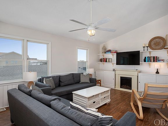 The views from this freshly remodeled semi-oceanfront never get old! The house has all new flooring, interior paint, kitchen cabinets and countertops. You can see for miles, and you'll never tire of facing east to watch the surf, the sun and the moon and stars, seagulls and kids on the beach! You'll start you day with a cup of java on the top floor covered deck. And, when you're ready, go into the living area where you'll find a brand new kitchen design with a large island and ample dining area where you can enjoy looking at the ocean. Call the rest of your family over from the living room where they're reading, relaxing or watching tv knowing that in the winter the electric fireplace will be adding to the off season charm of the place. Also on this level is a half bath and an ensuite bedroom/bath that's nice & private. On the mid-level, you'll find the laundry by the back door where you'll drop off your towels as you come in from the pool or covered hot tub/picnic area. Pick your favorite of the four bedrooms on this level. There's a hall bath, a shared bath and an ensuite so everyone has plenty of access. Also, on the ground level you'll find a great storage area for beach chairs and toys and plenty of space to enjoy dining/hot tubbinb in the shade. There's a built in following of loyal renters who've been coming here forever knowing they'll have a great experience at Sea Glass! You don't want to miss this one!