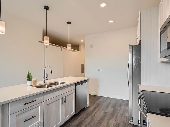 This BRAND NEW one bedroom home is in the perfect location with the perfect features! The large island in the kitchen is perfect for cooking or enjoying meals from Uber Eats. Open the sliding glass door to take in the fresh Colorado air. Inside, you'll find hardwood-style flooring, stainless steel appliances, an in-home washer and dryer, and smart home features. Outside, the vibrant neighborhood awaits. Just 2 blocks away, you'll find Rise and Shine Biscuit Kitchen, with Leroy's Bagels, SloHi Coffee, Greg's Taproom and Kitchen, and Hogshead Brewery all within a 3-block radius. Sloan's Lake, perfect for leisurely strolls or paddleboard adventures, is just 4 blocks away. Union Station, less than 10 minutes away, provides easy access to the city center. This prime location also puts you minutes from the trendy neighborhoods of LoHi, Highlands, and Sloan's Lake. Community amenities include a green building design, a pet wash station, and electric vehicle charging stations. Relax on the outdoor rooftop deck or take advantage of package receiving with Fetch. The resident parking garage features EV charging stations, and public transportation is nearby for easy commuting. Application Fee $23 Holding Fee $275 Fetch Package Service $25 Garage Open $75 SmartHome Fee $35 Resident Responsible for all utilities
