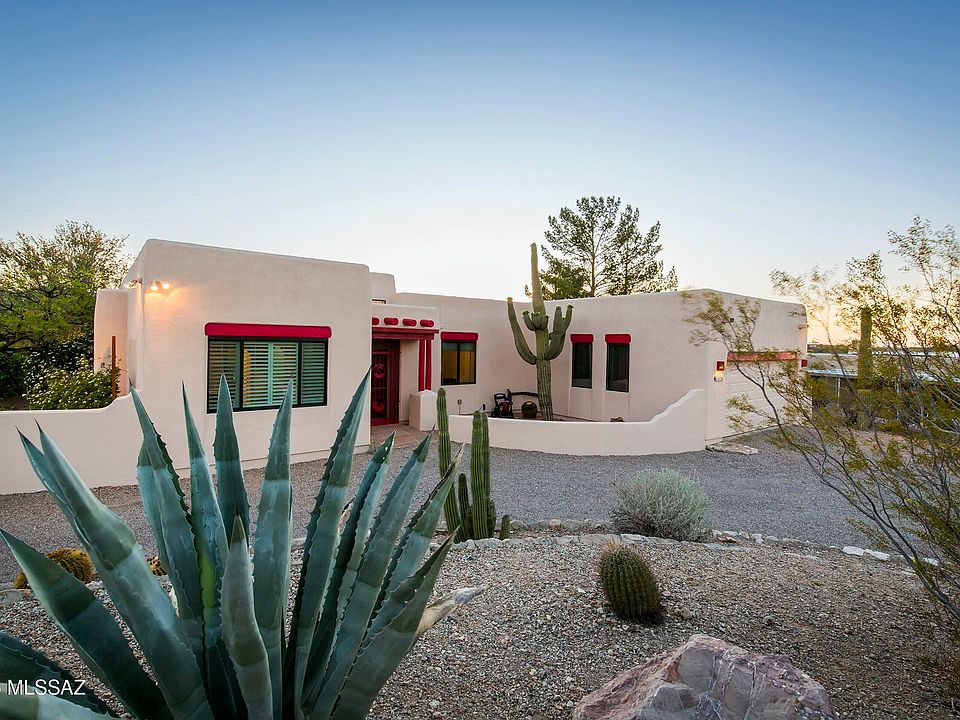 This stylish 4-Bedroom Home with City & Mountain Views - Ideal for Professionals...the 4-bedroom, 2-bath home offers the perfect mix of privacy, comfort, and convenience for busy people. With clear views of both the Catalina and Tucson Mountains, you'll enjoy peaceful mornings and stunning sunset evenings from your backyard. One bedroom is set up as a home office with built-in shelving, ideal for remote or hybrid work. Inside, the home features stunning new hardwood floors and ceramic tile, upgraded granite countertops, new range, and kitchen that opens to a fabulous family space with wood-burning fireplace. Anderson windows and plantation shutters filter the light-filled living/dining area. Sitting on .86 of an acre, you have room & privacy. Easy access to Caterpillar, Raytheon, I-10, UA