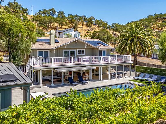 Gated Glen Ellen retreat on .69 acre with sweeping Sonoma Mountain views. With 2,137 sq. ft. of living space the main home offers 3bd/2ba, hardwood floors, updated baths, and expansive decks. A new 1bd/1ba ADU includes Miele appliances and laundry. Grounds feature a pool, outdoor shower, drought-tolerant gardens, a 60-vine Grenache vineyard with path to the creek, plus solar, a large shop and space in the basement. Property is on public utilities. Downtown Glen Ellen, ~1 hour to San Francisco.