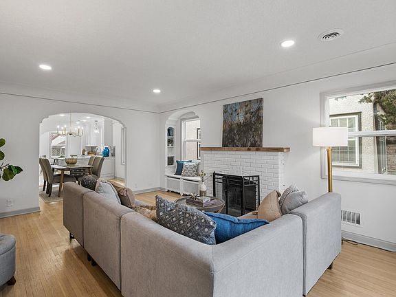 Nestled between Minnehaha Creek and Nokomis, this completely renovated Tudor is a must see. Brand new custom kitchen, bathrooms, new windows, paint, trim, flooring, etc. Upstairs you'll find a true owner's retreat with soaking tub, shower, walk-in closet, sitting room/flex space and laundry. Main floor adds 2 more bedrooms, family room, separate dining, porch, and another full bath. The upper level was gutted to the studs and closed cell spray foam installed on all ceilings/walls so even the attic spaces are warm. Every space in this home was thoughtfully designed and renovated by licensed contractors. The lower level has a large family room, 4th bedroom, and 1/2 bath. Nearly all new plumbing and wiring throughout the home, new fixtures & appliances as well as a new high efficiency boiler and roof 2 years ago. Overlooks park and creek across the street and only a few blocks to Lake Nokomis Park Beach.