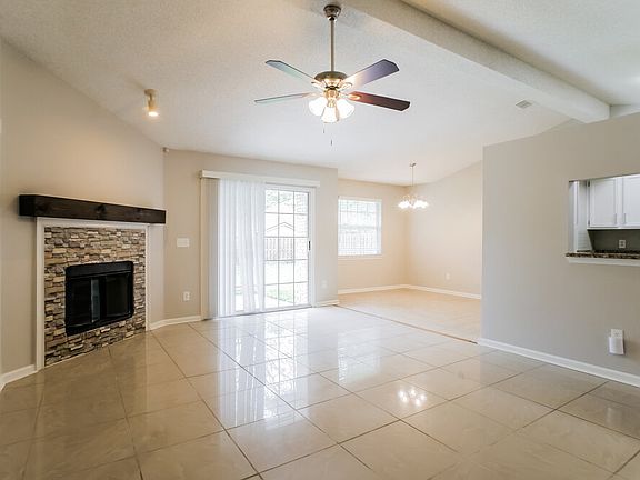 Please note, our homes are available on a first-come, first-serve basis and are not reserved until the holding fee agreement is signed and the holding fee is paid by the primary applicant. This home features Progress Smart Home - Progress Residential's smart home app, which allows you to control the home securely from any of your devices. This home is priced to rent and won't be around for long. Apply now, while the current residents are preparing to move out, or call to arrange a meeting with your local Progress Residential leasing specialist today. Some images have been virtually staged to help showcase the potential of spaces in the home. The furnishings shown are for illustrative purposes only and are not included in the home. Fall in love with this beautiful four-bedroom, two-bathroom rental home in Jacksonville, Florida. The gorgeous single-story house boasts a formal dining room and a bonus room, perfect as an office or den. Relax in the comfortable living room. It features lovely tile flooring and a stylish corner fireplace. Mealtime is easier in the up-to-date kitchen. You'll treasure the handsome granite countertops and the pass-through window to the living room. Carpeting and an elevated ceiling with a fan add comfort to the main bedroom. The room includes two walk-in closets plus an en suite bathroom with a luxurious garden bathtub. Step outside to find a fabulous covered front porch and a large backyard with an open-air patio. Schedule a showing soon.