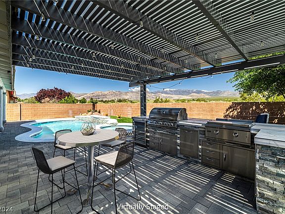 Stunning home in Mountain Falls Golf community in beautiful Pahrump Nevada! A true once in a "blue moon" opportunity here! Positioned at the end of a cul-de-sac with no other homes in the back, you will not ever get tired of the view from your back yard! Speaking of back yard, the home owner added an amazing heated pool, spa and a full outdoor kitchen to this 4 bedroom 2 bath, 3 car garage home! You will never want to leave! Located on the South side of Pahrump so your commute to Vegas will be under an hour along with the closeness to the town of Pahrump this home is PERFECT! Don't wait! This truly is a must see!