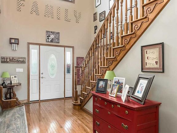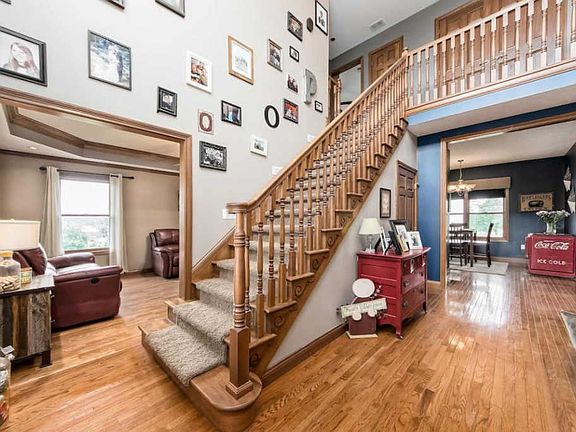 Beautiful custom built home tucked away between Granville and Johnstown. Hardwood flooring on first level. Custom cabinets with soft close shelves . New Stainless steel appliances. Large laundry room located on first level. Enjoy your master suite with a Jacuzzi tub. French doors that walk out to your private deck. 3 large bedrooms on the 2nd floor with large bath. Spacious loft that looks over your front foyer. 5th bedroom is located over 3 car garage and is additional 400 plus sqft. Front porch runs the width of the house. Full basement with a wood burning stove. Natural gas also to heat. Finished 3 car garage with lots of storage space. Almost 3 acres of land.
