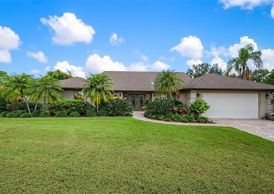 This fabulous home with lush gardens immediately captures your attention when you enter the double, designer glass front doors! You are welcomed into this spacious, light-filled home; with vaulted ceilings, which enhance the beauty of the interior. This home is a "showstopper" with its landscaping, lovely private backyard, with heated pool and patio. This home has plenty of room for entertaining family & friends! The updated kitchen showcases granite counters, wood cabinets and stainless appliances. The baths give you that serene feeling, enhanced by a garden view. As you tour the backyard, privacy is a main attraction with heated pool, lush landscaping, and fenced backyard. A private gate makes easy access to Butterfly Lake, plus 14 miles of walking and bike trails. The magnificent, weeping bottle brush tree offers a serene accent to the backyard, along with garden beds of tropical flowers and plants. This home even includes a golf cart door! No wonder The Meadows has been top ranked as one of The Most Desirable neighborhood communities in the USA! The Meadows Country Club offers three, 18-hole golf courses, a top tennis complex with 17 Har-Tru courts, a Jr. Olympic swimming pool with spa, fitness center, pro shops and three dining venues, plus miles of biking and walking trails. The Meadows is an award-winning neighborhood on 1,650 lush acres with 80 lakes and wildlife preserves and is convenient to cultural activities, beaches, restaurants, and shopping. The HOA includes access to the fitness center, pickle ball courts, social activities, and other services.