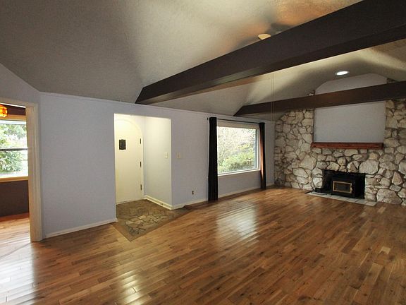 Step through the arched entry of this white stucco Spanish style bungalow. You will first notice the vaulted ceilings and impressive rock fireplace with a wood stove insert. The home is cozy and inviting with hardwoods throughout, solar tubes to bring in additional daylight and a glass door leading to the covered patio. A smart floor plan and good-sized bedrooms add comfort to the home. The third bedroom is a converted garage and offers many possible uses. Mature bamboo creates a privacy screen in the backyard to offer respite and relaxation. The partial basement and attic offer storage options. Washer and dryer in the basement. A short walk to Woodstock and you are in the heart of the neighbor with access to New Season's, Delta Cafe, Otto's, Grand Central, the library, Woodstock Park and more. Owner pays trash. Tenant pays other utilities.