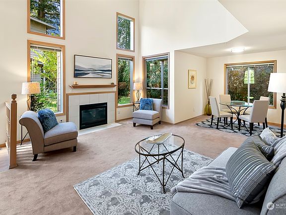 Peaceful seclusion in a fabulously convenient location! This spacious townhome boasts 2 story vaulted ceilings, tons of light, hardwood floors, 2 bedrooms, 2.5 baths and a den/loft space perfect for your office or workout room! Living room/dining room with gas fireplace, kitchen with separate eating area, breakfast bar, composite countertops, large pantry and plenty of storage! Upstairs you will find the primary suite with walk-in closet & en-suite bath with dual vanity, soaking tub & large shower, 2nd bedroom, loft/den and full bath. Private back yard and patio, 2 car attached garage, gas forced air heat & hot water, and all appliances included! The quiet, end of the cul-de sac location is private and has ample visitor parking.