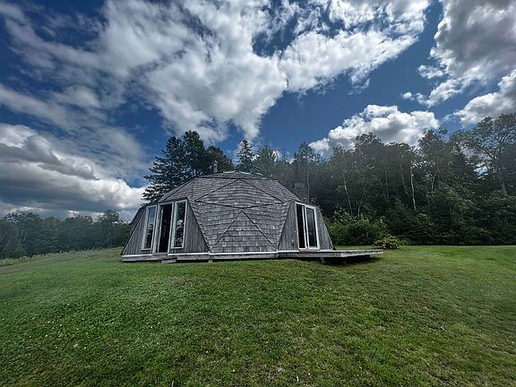 The house is veiled within 172 magical acres of fields and forest, the approach is 1/4 miles in, along a winding wooded trail that delivers you upon vibrant fields of wildflowers— think black eyed Susan’s, milk weed and Queen Anne’s Lace busy with birds and pollinators. Envision the greenest green against a sky of blue capped with picture perfect white clouds; welcome to the Dome at 4922 Bayley Hazen Road. This unique home has been lovingly curated by the present owner for almost 18 years. With over 130 wooded acres, a spring fed swimming pond and long views over the hills of Danville and it’s working landscape, this property offers privacy and a feeling of solitude — the quintessential Vermont escape.There is electric, a drilled well and septic system. The well built barn is plumbed and with some updates, might make a great apartment or short term rental. The home, the Dome, is not for everyone but it will speak to many. The land itself is amazing - choose to make the dome a fabulous and funky guest house and build a home more to your tastes— everything is already in place. Peacham is in Vermont’s storied NEK, it is minutes outside of St. Johnsbury, at the intersections of interstates 91 & 93. Boston and Montreal are both about 3 hours away. The recreation is amazing, with proximity to Burke Mountain, the Lamoille rail trail and the VAST system, Kingdom Trails and Groton State Park. Peacham offers choice from 7-12. Call now for a private viewing.