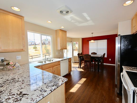 Do not miss this gorgeous 3 bed, 3 bath cul-de-sac home backing to open space and trails in Tollgate Crossing! Stunning views! This property features hardwood floors, neutral paint, and an abundance of natural light, offering a warm and welcoming atmosphere. Spacious eat-in kitchen with maple cabinets, slab granite counters, and matching appliances. Kitchen flows into the family room with cozy gas fireplace, ideal for family gatherings. Upstairs you'll find the king sized master bedroom with private bath, plus 2 additional bedrooms, a full bathroom and a loft. Partial, unfinished basement is great for storage. Huge backyard backing to open space and a walking trail, great for summertime BBQ's with friends & family! Near shopping, dining, E-470 & more! This home will not disappoint, schedule your showing today!
