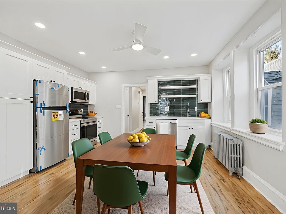 Freshly updated and full of charm, this bright and versatile apartment sits on a beautiful tree-lined block in a grand Victorian triplex just off Baltimore Avenue in West Philly. Fully renovated in 2020, this spacious apartment offers a thoughtfully designed layout with an open-concept kitchen, dining, and living area in the rear of the building. The kitchen is a showstopper white shaker cabinets paired with a stunning green tile backsplash and open shelving, quartz countertops, and stainless steel appliances including a flat glass-top convection range, dishwasher with third rack, and a brand-new refrigerator. The Kraus sink with built-in filtration means you can skip the Brita pitcher altogether. At the front of the home, the sunny bedroom features a huge bay window and beautifully refinished original hardwood floors. There's also in-unit laundry tucked conveniently within the bedroom. The bathroom feels like a spa retreat with its classic clawfoot tub, large window, and a separate vanity area with dedicated lighting and mirror perfect for getting ready without crowding the main sink space. Large windows throughout the apartment fill the space with natural light from every angle. Water and a Bennett Compost subscription are included in rent; tenants cover electric, gas, and internet/cable. Located just off Baltimore Avenue, you'll have some of the best neighborhood favorites right around the corner Carbon Copy, Cleo Bagels, Dahlak, Mariposa Co-op, Loco Pez, and so many more. Quick trolley access gets you into Center City in minutes, and several bus routes serve the area as well. Whether you're affiliated with Drexel, Penn, or CHOP, or simply looking for a charming home base away from downtown, 4922 Hazel Avenue offers the perfect mix of character, comfort, and convenience. Schedule your tour today!